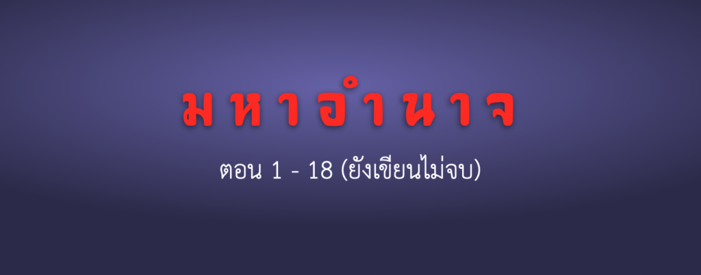 “มหาอำนาจ” ตอน 1“มหาอำนาจ” ตอน 2“มหาอำนาจ” ตอน 3“มหาอำนาจ” ตอน 4“มหาอำนาจ” ตอน 5“มหาอำนาจ” ตอน 6“มหาอำนาจ” ตอน 7“มหาอำนาจ” ตอน 8“มหาอำนาจ” ตอน 9“มหาอำนาจ” ตอน 10“มหาอำนาจ” ตอน 11“มหาอำนาจ” ตอน 12“มหาอำนาจ” ตอน 13“มหาอำนาจ” ตอน 14“มหาอำนาจ” ตอน 15“มหาอำนาจ” ตอน 16“มหาอำนาจ” ตอน 17“มหาอำนาจ” ตอน 18 “มหาอำนาจ” ตอน 1 ถึง ตอน 18 โพสต์ในเพจนิทาน เดือนกุมภาพันธ์ 2565 (ยังเขียนไม่จบ)กลับสู่หน้ารวมนิทานเรื่องอื่น ๆ ที่ไม่ได้ตีพิมพ์ในเล่ม 1 ถึงเล่ม 10
